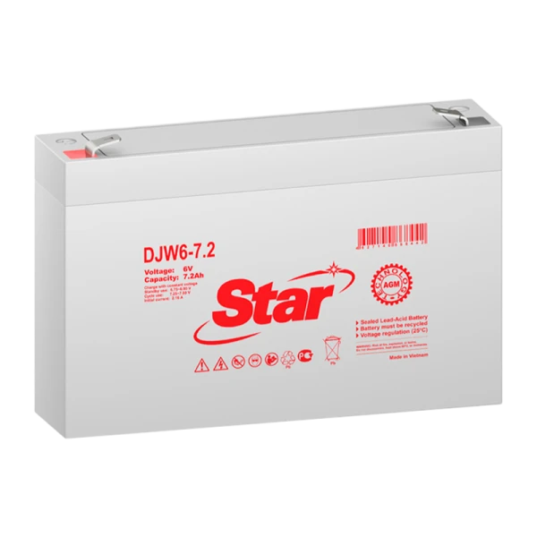 Аккумуляторные батареи STAR серии DJW6-7.2 – необслуживаемые (выполненные по AGM–технологии) батареи общего применения, имеют небольшие массогабаритные показатели. Предназначены для обеспечения резервным питанием систем охраны и пожарной безопасности, телекоммуникационного оборудования и связи, промышленных объектов широкого назначения, работы в ИБП (UPS).