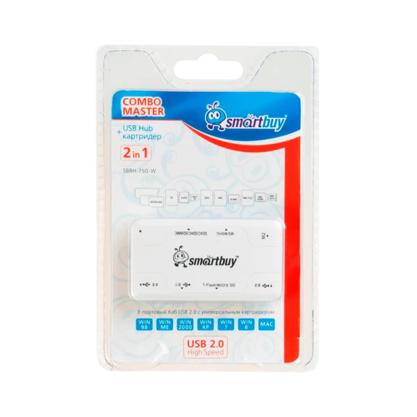 Картридер Smartbuy 750 USB2.0 SD/microSD/MS/M2 Combo с USB хабами белый