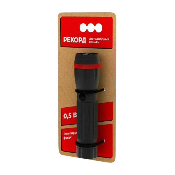 Фонарь универсальный Рекорд MR-470 0.5W 1LED от батареек черный (1/12/72)
