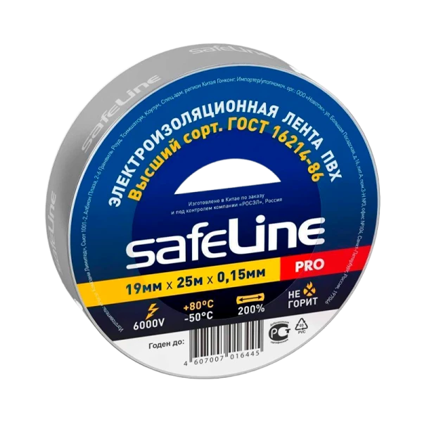 Изолента Safeline 19мм*25м ПВХ серо-стальной (10/160)