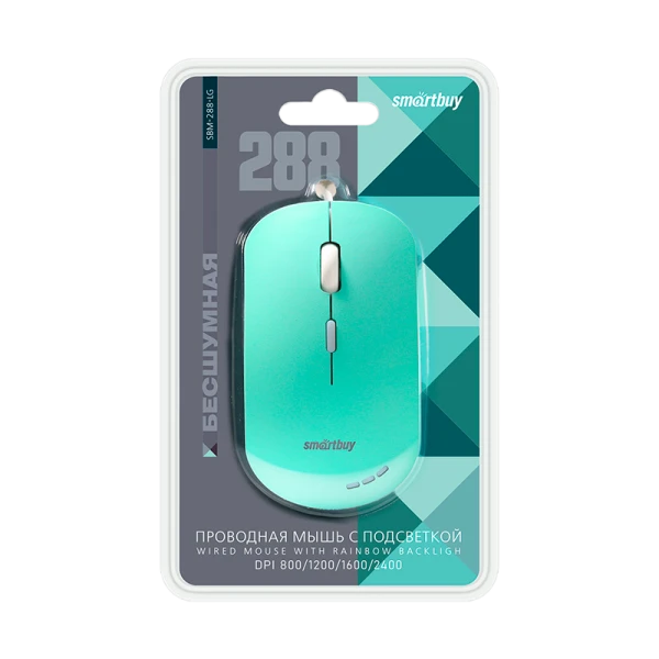 Мышь проводная беззвучная с подсветкой Smartbuy 288 зеленая (SBM-288-LG) с бесшумными кнопками. Гарантирует бесценный комфорт как для пользователя, так и для его окружения;