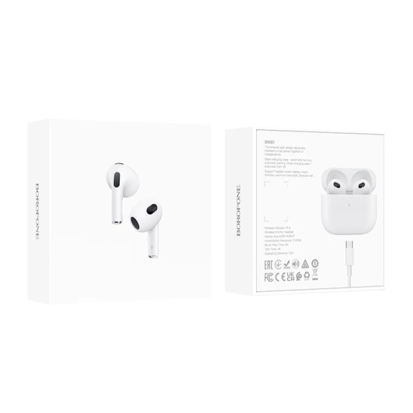 Наушники вставные Borofone BW81 bluetooth 5.4 с микр. белый (1/22/132)