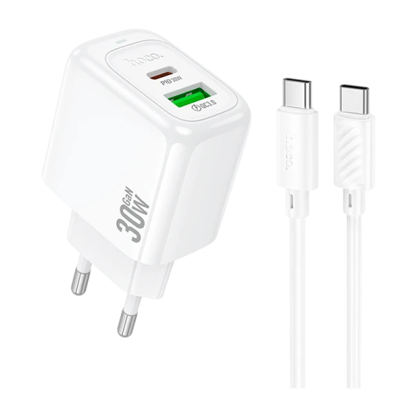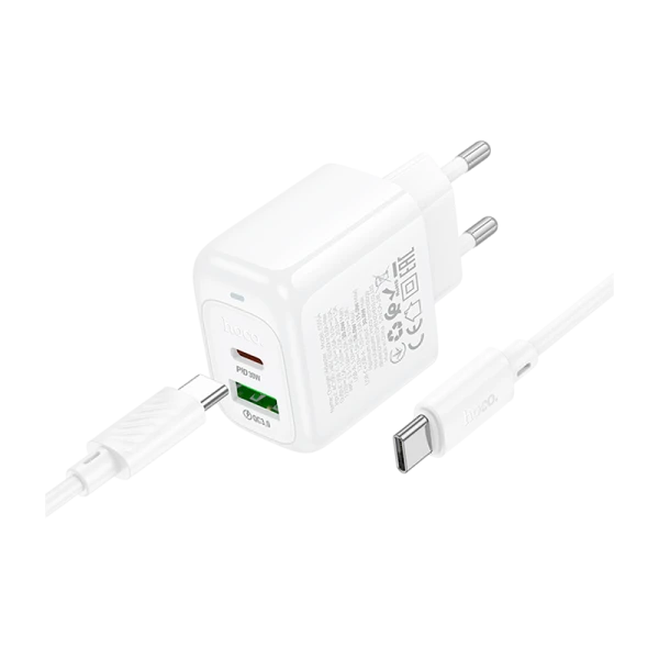 Сетевое З/У HOCO CS55A 1USB+1Type-C 3.0A 30W QC3.0 с кабелем Type-C/Type-C белый (1/28/168)