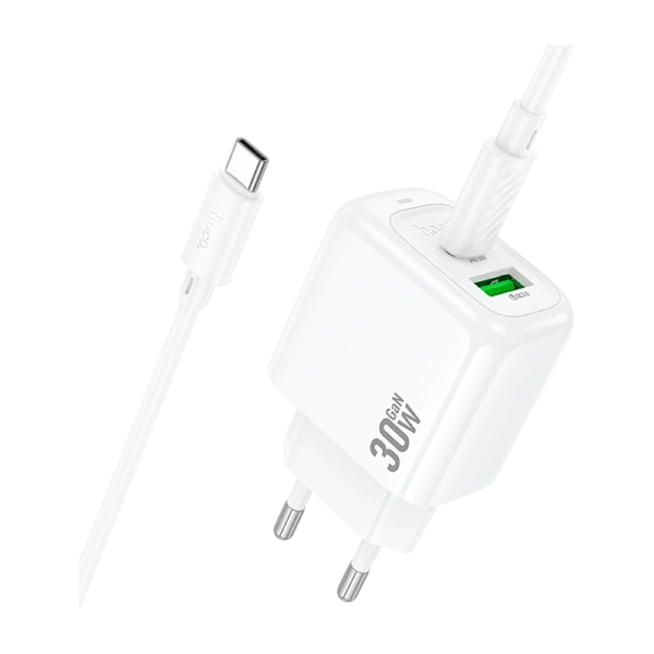 Сетевое З/У HOCO CS55A 1USB+1Type-C 3.0A 30W QC3.0 с кабелем Type-C белый;
