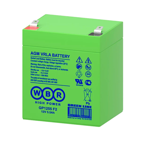 Аккумулятор свинцово-кислотный WBR GP1255 F2 12V 5.5Ah