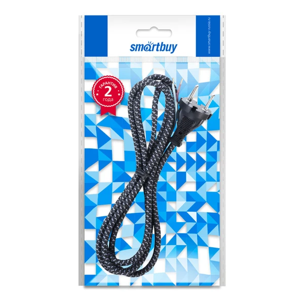 Сетевой шнур в тканевой оплетке без заземления 1,8 метра, 6А/1,2кВт, черный