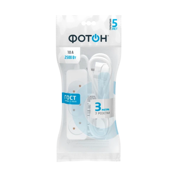 Удлинитель сетевой "ФОТОН" 10-33 - это простая, но надёжная и безопасная модель по самой выгодной цене. Предназначена для подключения электроприборов суммарной мощностью до 2500Вт. Колодка с 3 розетками и длиной провода 3 метра. Полностью соответствует нормам ГОСТ и ЕАС. Предоставляется безусловная гарантия 5 лет. Корпус изготовлен из термоустойчивого и ударопрочного пластика. Контактная группа из латуни обеспечивает высокую электропроводность и максимально плотный контакт со штырями вилок подключаемых приборов. Гнездовые контакты расположены под углом для одновременного подключения нескольких приборов. Подходят для подключения вилок российского и европейского стандарта. Провод ПВС с медной токопроводящей жилой и двойной ПВХ изоляцией устойчив к нагреву и обладает повышенной гибкостью. Удлинитель белого цвета подходит для большинства ситуаций домашнего использования.