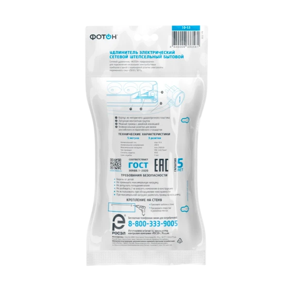 Удлинитель сетевой "ФОТОН" 10-53 - это простая, но надёжная и безопасная модель по самой выгодной цене. Предназначена для подключения электроприборов суммарной мощностью до 2500Вт. Колодка с 3 розетками и длиной провода 5 метров. Полностью соответствует нормам ГОСТ и ЕАС. Предоставляется безусловная гарантия 5 лет. Корпус изготовлен из термоустойчивого и ударопрочного пластика. Контактная группа из латуни обеспечивает высокую электропроводность и максимально плотный контакт со штырями вилок подключаемых приборов. Гнездовые контакты расположены под углом для одновременного подключения нескольких приборов. Подходят для подключения вилок российского и европейского стандарта. Провод ПВС с медной токопроводящей жилой и двойной ПВХ изоляцией устойчив к нагреву и обладает повышенной гибкостью. Удлинитель чёрного цвета идеально подходит для подключения приборов с проводами чёрного цвета, для использования в интерьерах тёмных тонов, а также при размещении на полу в помещениях, склонных к загрязнению.