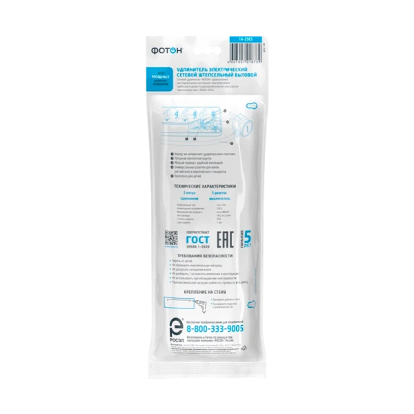 Удлинитель сетевой "ФОТОН" 16-25ES с заземлением предназначен для подключения электроприборов суммарной мощностью до 4000Вт. Оснащен выключателем, позволяющим обесточить все разъемы одним нажатием кнопки. Снабжены защитными шторками, прикрывающими контакты, для обеспечения дополнительной безопасности.