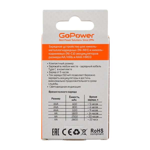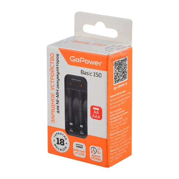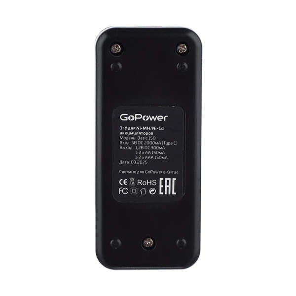 З/У для аккумуляторов GoPower Базовое/Basic 150 Ni-MH/Ni-Cd 2 слота (1/40/80)