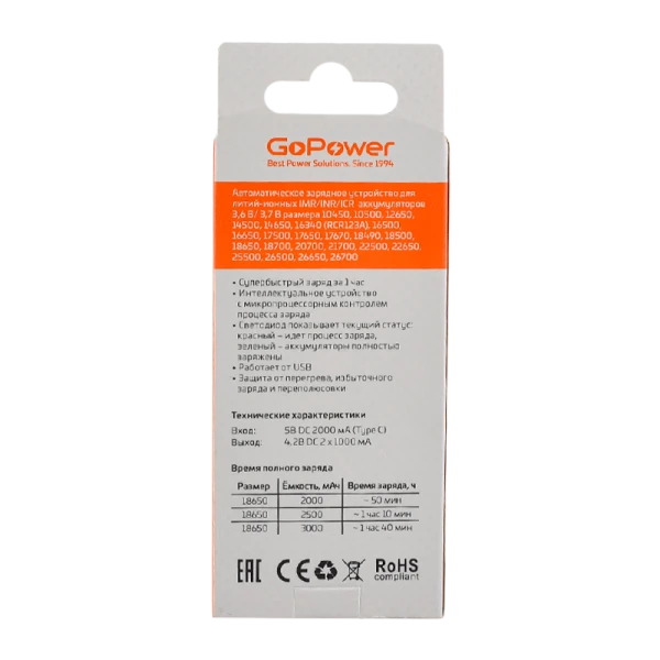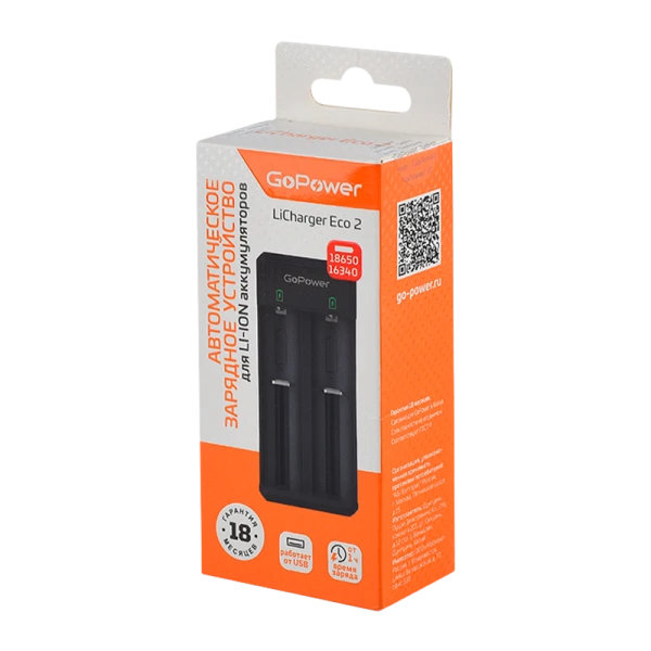 З/У для аккумуляторов GoPower ЛиЧарджер/LiCharger Eco 2 Li-ion 2 слота (1/40/80)