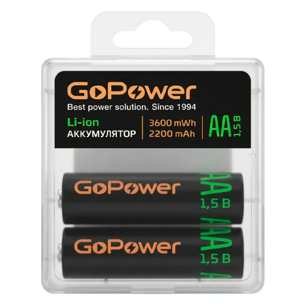 Аккумулятор бытовой GoPower AA БОКС2 Li-ion 1.5V 2200mAh (2/100/200)