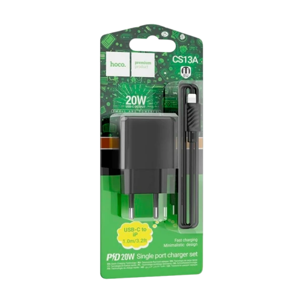 Сетевое З/У HOCO CS13A Type-C 3.0A 20W PD,QC с кабелем Type-C-Lightning черный (1/28/168)