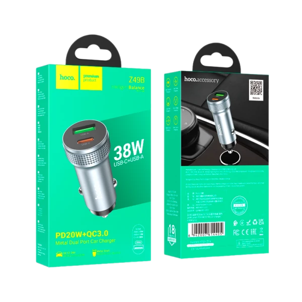 Автомобильное зарядное устройство HOCO Z49B – это аксессуар для удобной и быстрой зарядки ваших гаджетов в автомобиле. Благодаря наличию в нем двух выходных разъемов USB + Type-C вы сможете заряжать два устройства одновременно. Данная модель обеспечивает суммарную выходную мощность до 38W и выходной ток до 3A. Максимальная мощность одного порта (Type-C) составляет 20W. Адаптер поддерживает технологию быстрой зарядки.