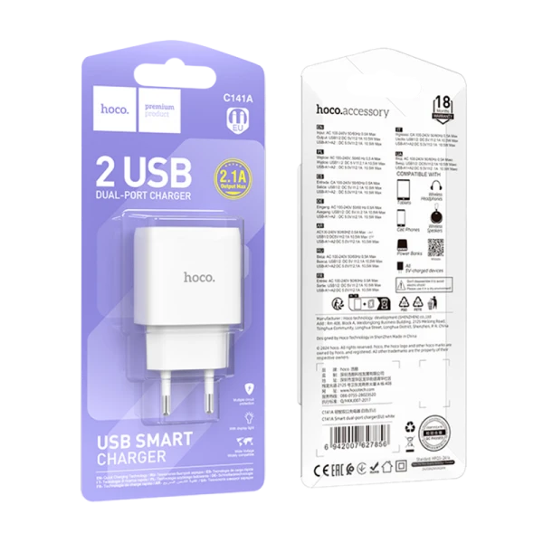 Сетевое З/У HOCO C141A 2USB 2.1A белый (1/36/216)