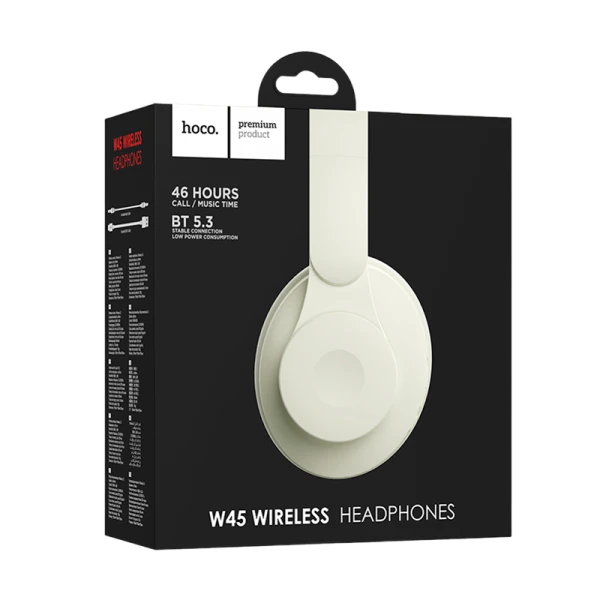 Наушники полноразмерные HOCO W45 bluetooth 5.3 с микр. белый (1/36)