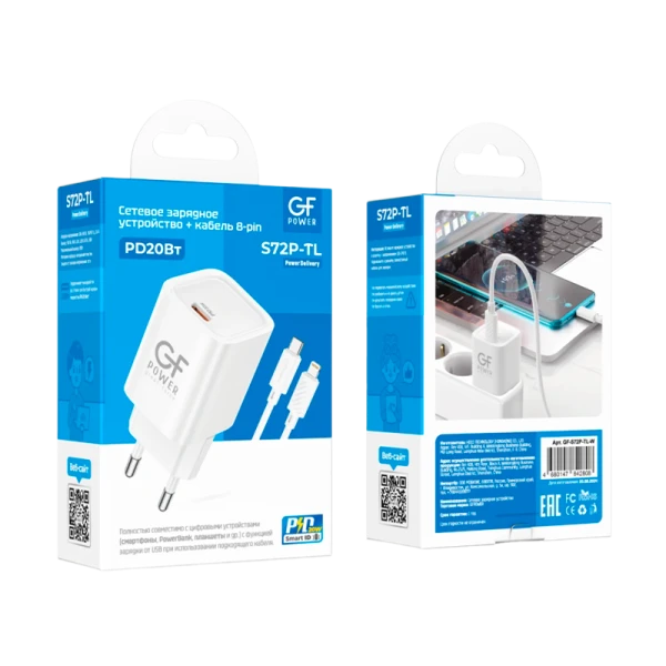 Сетевое З/У GFPower S72P-TL Type-C 20W QC3.0 с кабелем Type-C-Lightning белый (1/30/180)