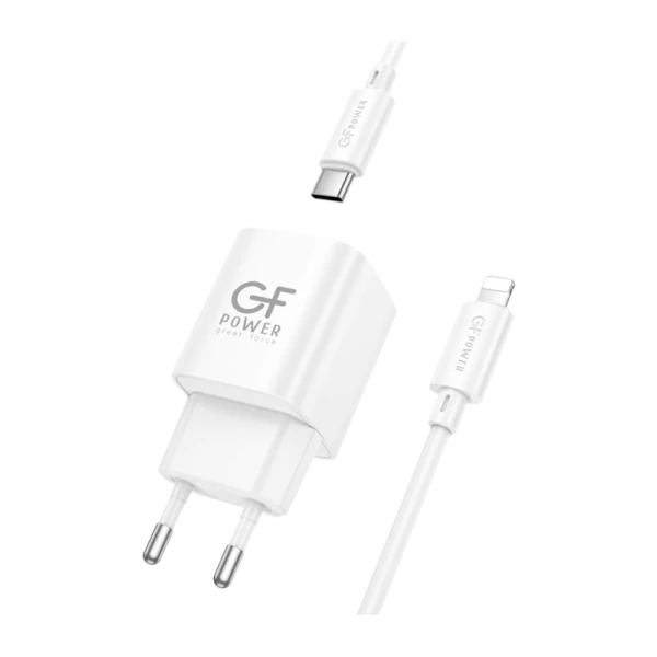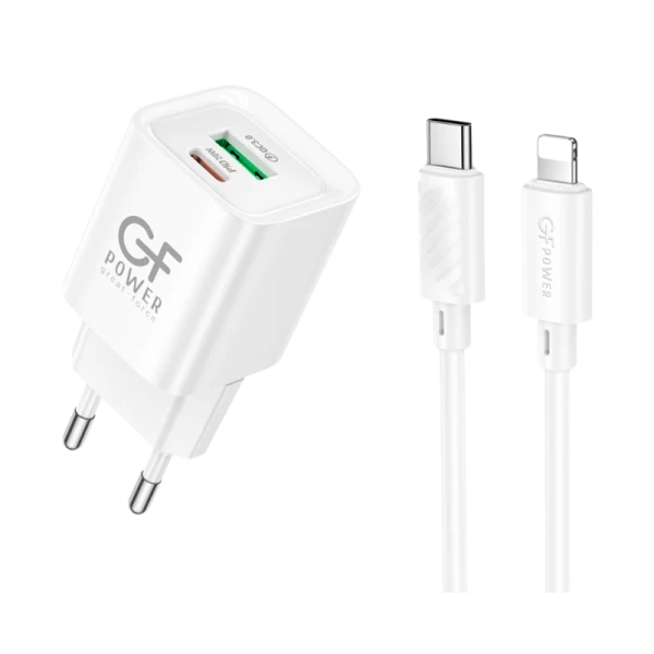 Сетевое З/У GFPower S73PQ-TL 1USB+1Type-C 20W PD,QC с кабелем Type-C-Lightning белый (1/30/180)