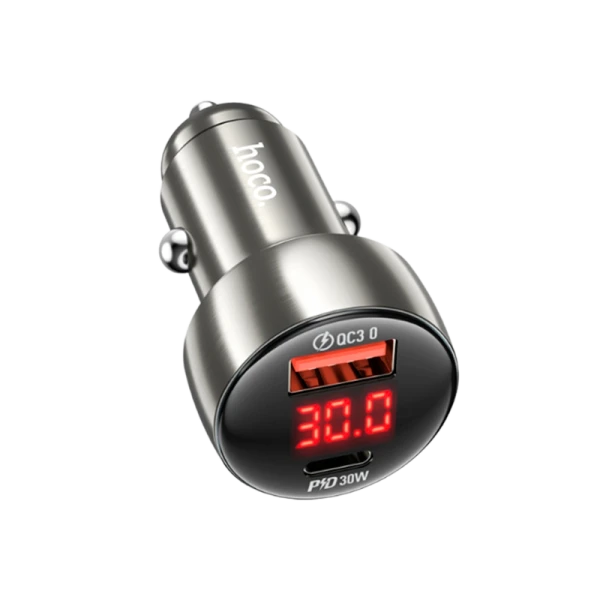 Автомобильное З/У HOCO Z50 1USB+1Type-C 48W дисплей серый (1/12/120)