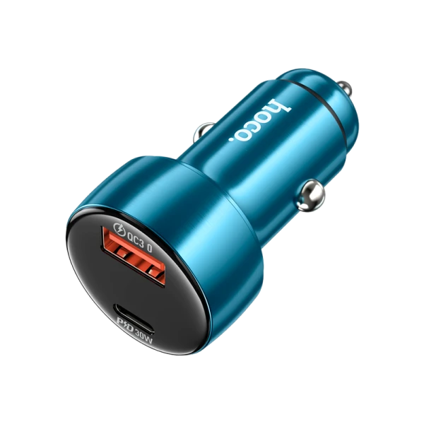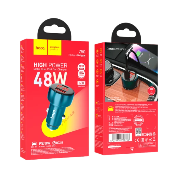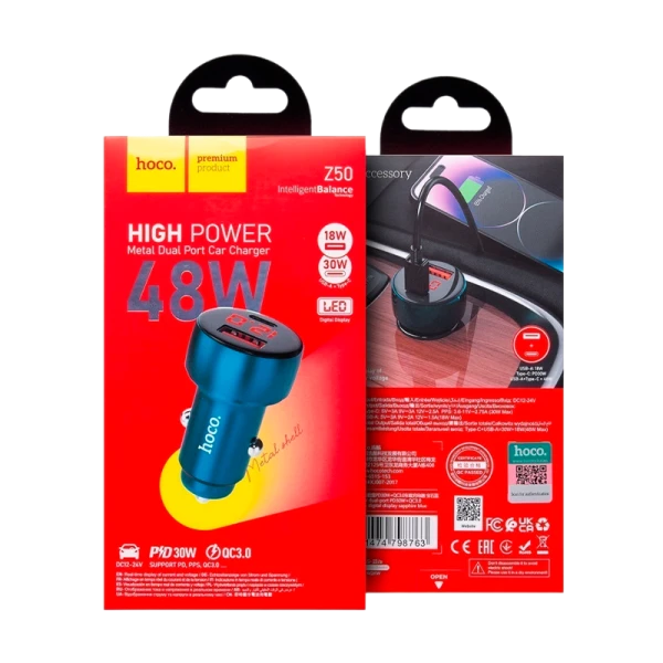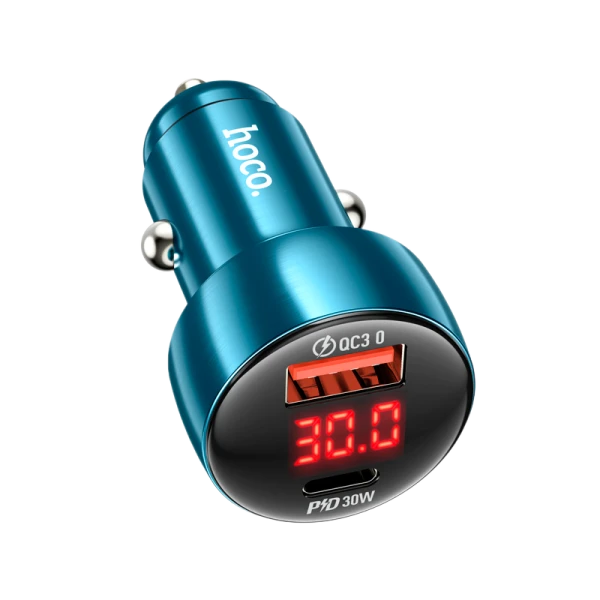 Автомобильное З/У HOCO Z50 1USB+1Type-C 48W дисплей синий (1/12/120)