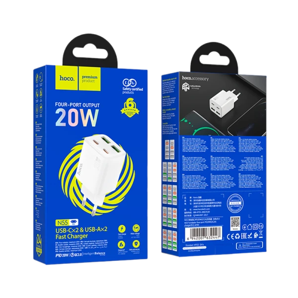Сетевое З/У HOCO N55 2USB+2Type-C 3.0A 20W PD3.0 белый (1/12/120)