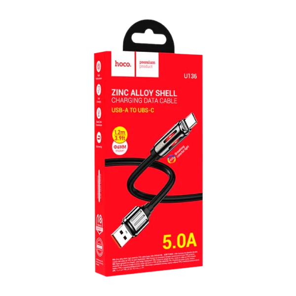 Кабель HOCO U136 USB (m)-Type-C (m) 1.2м 5.0A TPE черный