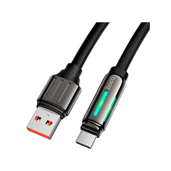 Кабель для зарядки Type-C USB Hoco U136 5A 1.2m RGB подсветка прочный силиконовый;