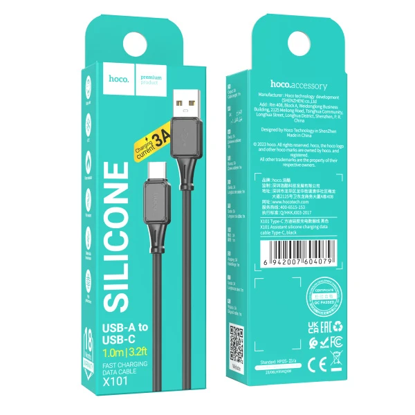 Кабель USB - Type-C HOCO X101 Assistant, 1.0м, 3,0А, цвет: чёрный