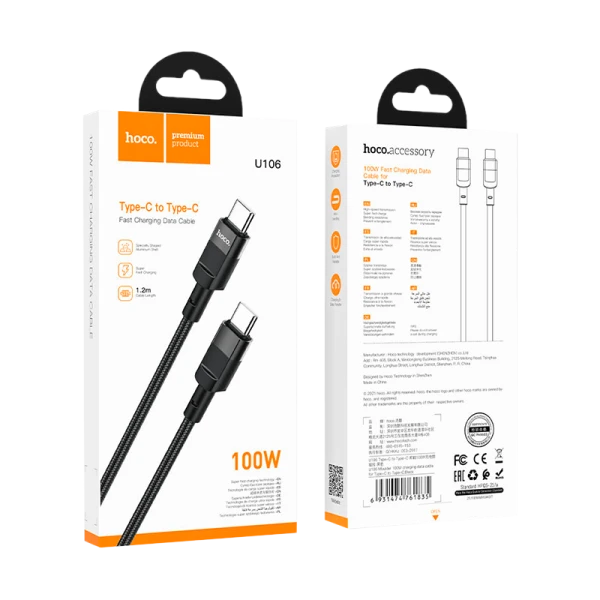 Кабель HOCO U106 Type-C (m)-Type-C (m) 1.2м 5.0A 100W ткань черный