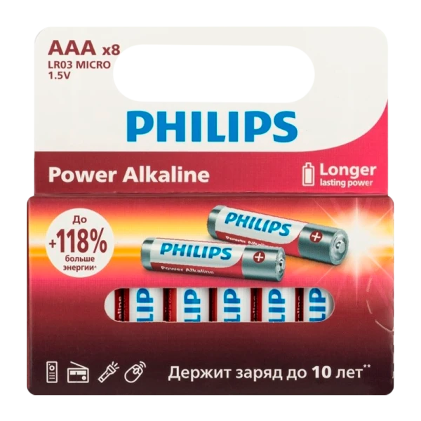 Батарейка Philips Power LR03 AAA BL8 Alkaline 1.5V;