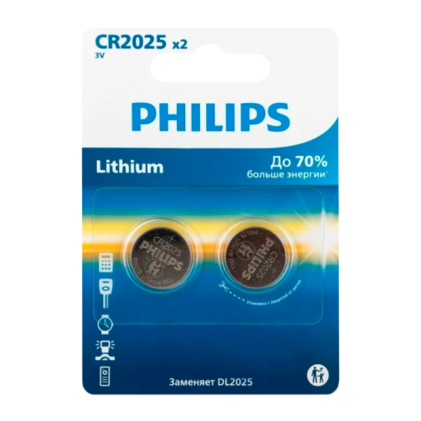 Литиевые батарейки для электронных устройств PHILIPS Lithium CR2025. Технология высшего качества для миниатюрных устройств. Долгий срок службы в повседневных портативных электронных устройствах;