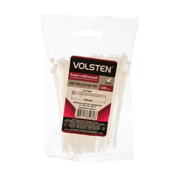Хомут Volsten нейлон 2.5х100мм 100шт. белый (1/10/500)