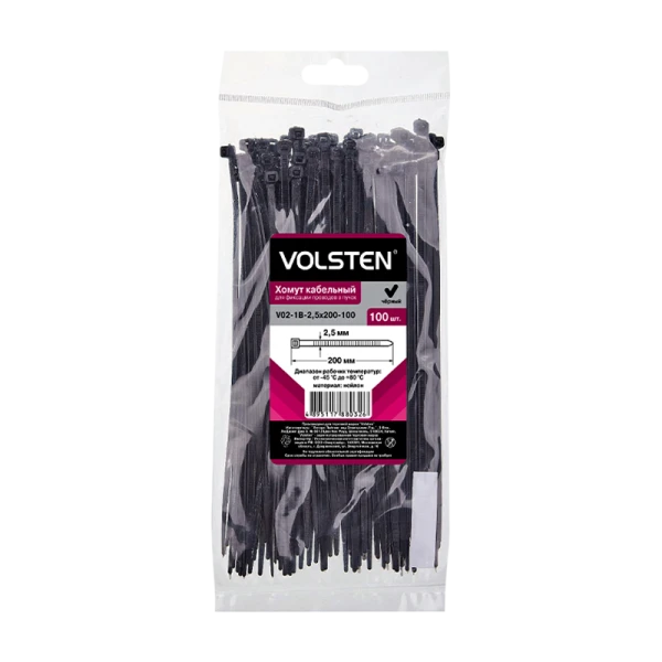 Хомут Volsten нейлон 2.5х200мм 100шт. черный (1/10/280)