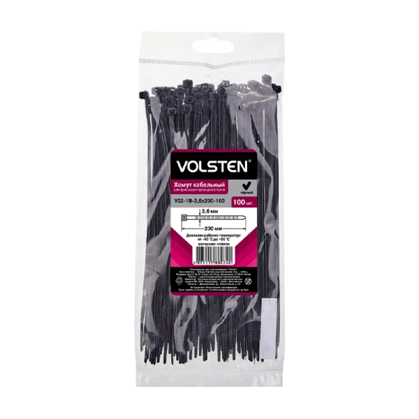 Хомут Volsten нейлон 3.6х200мм 100шт. черный (1/10/200)