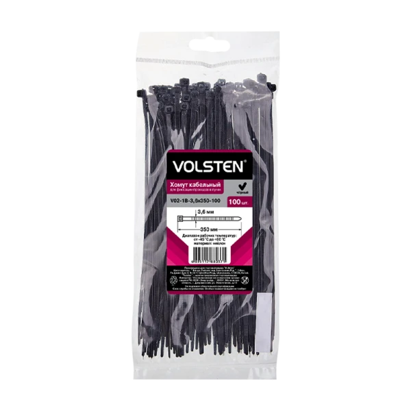 Хомут Volsten нейлон 3.6х350мм 100шт. черный (1/10/110)