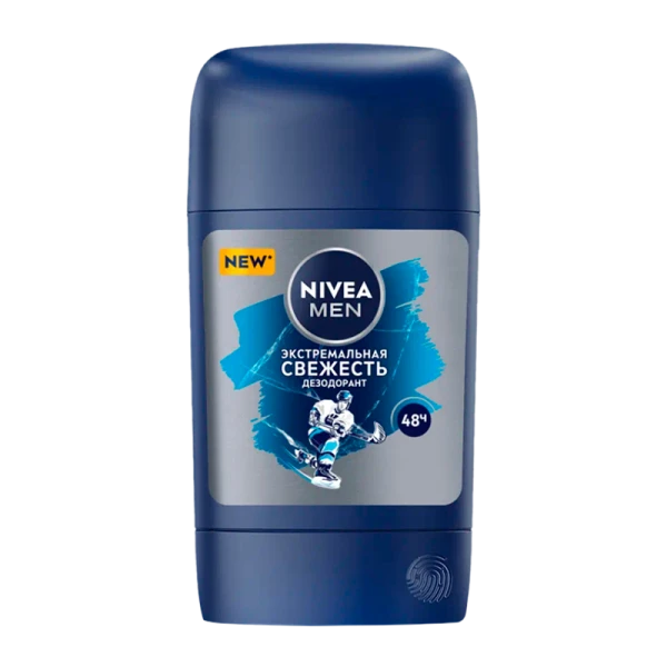 NIVEA Дезодорант-стик Экстремальная свежесть Men – это продолжительная защита от пота и запаха для сильной половины человечества. В состав средства включен охлаждающий комплекс, который мгновенно проявляется при нанесении и дарит невероятное ощущение свежести, сохраняющееся на протяжении 48 часов.