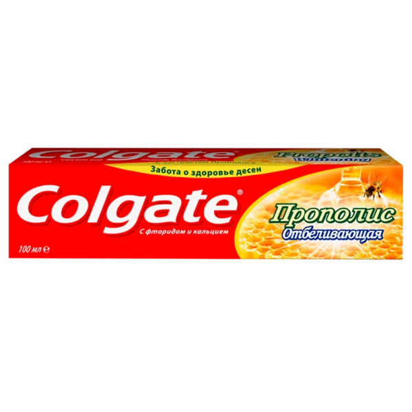 Зубная паста Colgate Прополис Отбеливающая с экстрактом прополиса бережно отбеливает зубы и помогает сохранить зубы и десны здоровыми. Обеспечивает защиту от кариеса и освежает дыхание. Целебные свойства прополиса были известны еще в древности.
