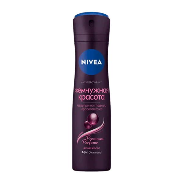 Антиперспирант Nivea Premium Perfume Жемчужная красота 150мл - надежная защита от потоотделения и неприятного запаха на 48 часов. В основе формулы антиперспиранта лежит натуральный экстракт черного жемчуга, который обеспечит стойкий премиальный аромат и придаст вашей коже гладкость и сияние. Он быстро сохнет, не оставляя следов на одежде и липкости на коже. Не содержит этилового спирта, имеет удобный формат аэрозоля. Способ применения: встряхнуть баллон и распылить средство на область подмышек с расстояния 15-20 см. Не рекомендуется использовать на раздраженной и поврежденной коже. Дерматологически протестировано.