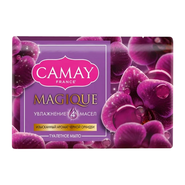 Туалетное мыло CAMAY «Магическое заклинание» с ароматом черной орхидеи обладает завораживающим ароматом. Попробуйте настоящее произведение парфюмерного искусства. В верхних нотах этого экзотического аромата вы услышите игривый аромат красной смородины. Средние ноты насыщены теплым, глубоким и терпким запахом редкого цветка черной орхидеи и насыщенных тонов темных цветов. А базовые ноты будут раскрываться на вашей коже еще длительное время после душа чувственным и завораживающим ароматом сандала и драгоценной амбры. Раскройте все грани своей чувственности с помощью магического сочетания ароматов твердого мыла CAMAY Magique. Приятная текстура мыла хорошо вспенивается и мягко очищает кожу. Благодаря своей текстуре твердое мыло CAMAY «Магическое заклинание» с легкостью превращается в нежную пену, полностью смывается водой, позволяя коже дышать.