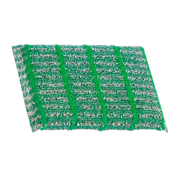 Губка для мытья посуды выполнена из поролона с металлизированной нитью, справляется с трудными загрязнениями, пятнами жира.