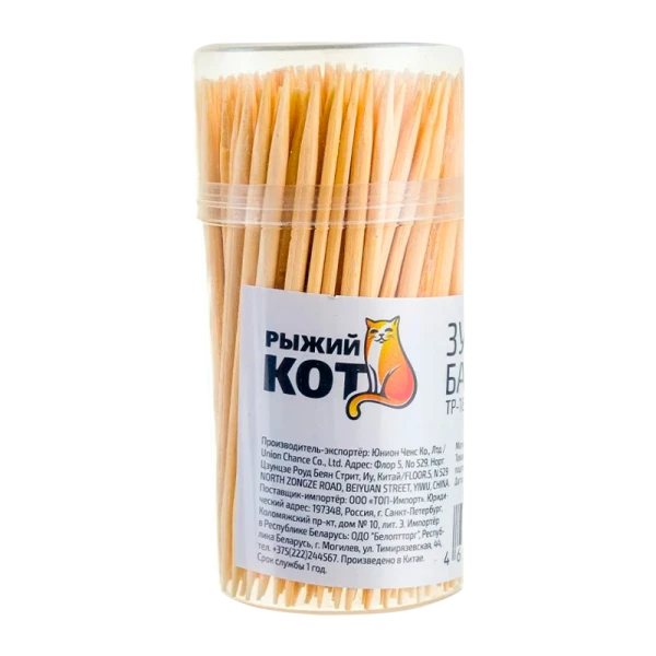 Бамбуковые зубочистки Рыжий кот TP-180, 180 шт предназначены для гигиены полости рта. Позволяют легко удалить остатки еды между зубами, поэтому отличаются практичностью. Не содержат вредных веществ, за счет чего безопасны в использовании. Благодаря прочной упаковке зубочистки защищены от пыли и грязи.