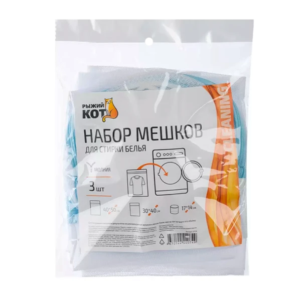 Мешки для стирки белья Рыжий кот полиэстер 3шт. на молнии (1/10/200)