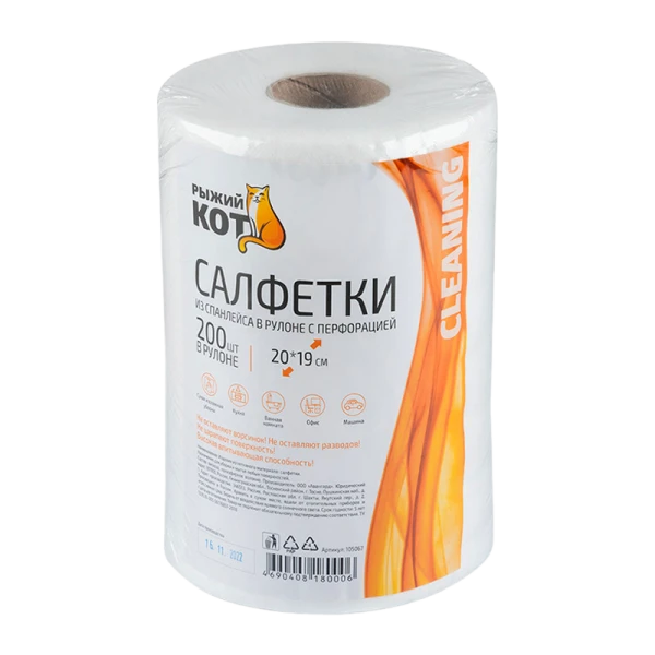 Салфетка Рыжий кот 20х19см 200шт. спанлейс с перфорацией в рулоне (1/12)