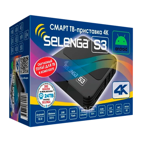 СМАРТ ТВ-приставка Selenga S3 Android 10.0 4К черный (1/20)