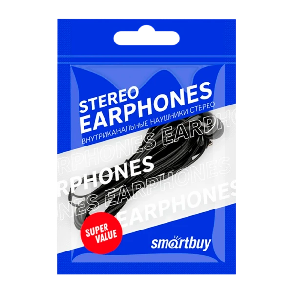 Наушники внутриканальные Smartbuy A4 (цветной пакет) черный (1/100)