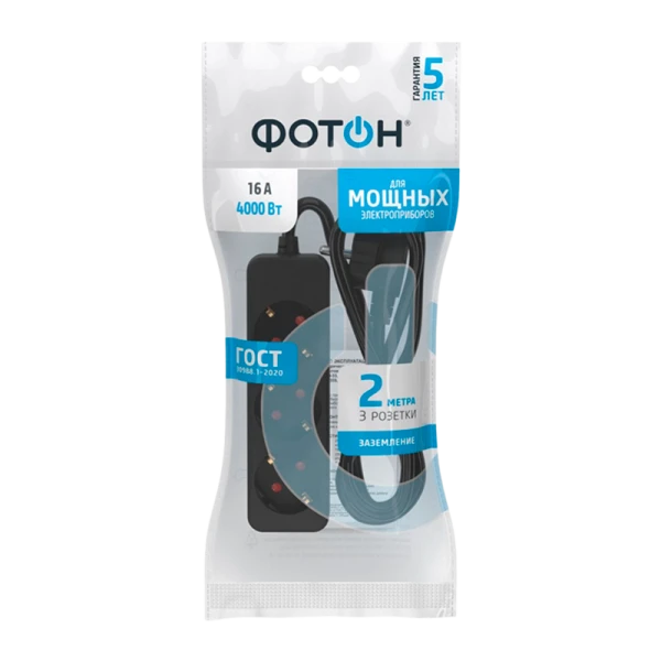 Удлинитель Фотон 16-23Е 3р.С/З 16A 2.0м ПВС 3x1мм² черный (1/20)