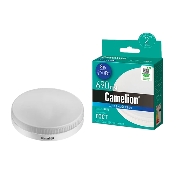 Светодиодная лампа Camelion LED8-GX53/865/GX53 - это надежное решение для освещения жилых, офисных и коммерческих помещений. Мощность 8 Вт, цветовая температура 6500K, световой поток 690 лм.