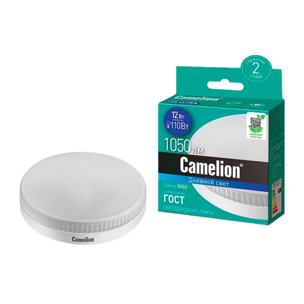 Светодиодная лампа Camelion LED12-GX53/865/GX53 - это отличный выбор для освещения жилых, офисных и коммерческих помещений. Мощность 12 Вт, 6500K. CДЛ Camelion - это инновационное решение, разработанное на основе новейших светодиодных технологий (LED).