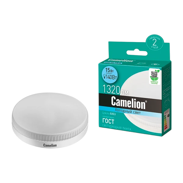 Camelion LED15-GX53/845/GX53 - инновационная светодиодная лампа мощностью 15Вт. Прекрасно подходит для освещения жилых, офисных и коммерческих помещений. CДЛ Camelion - это инновационное решение, разработанное на основе новейших светодиодных технологий (LED). Встроенный источник питания позволяет использовать СДЛ Camelion в стандартных патронах.