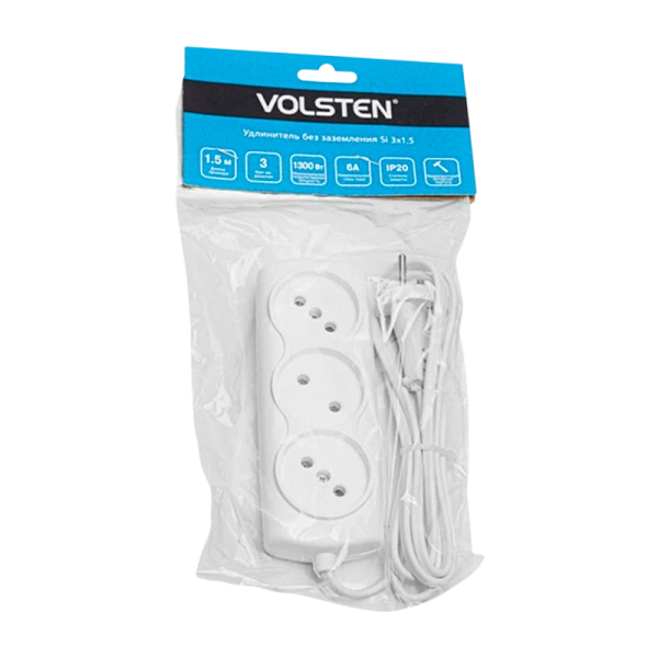 Удлинитель Volsten 3р.Б/З 6A 1.5м ШВВП 2x0.75мм² IP20 белый (1/10/60)